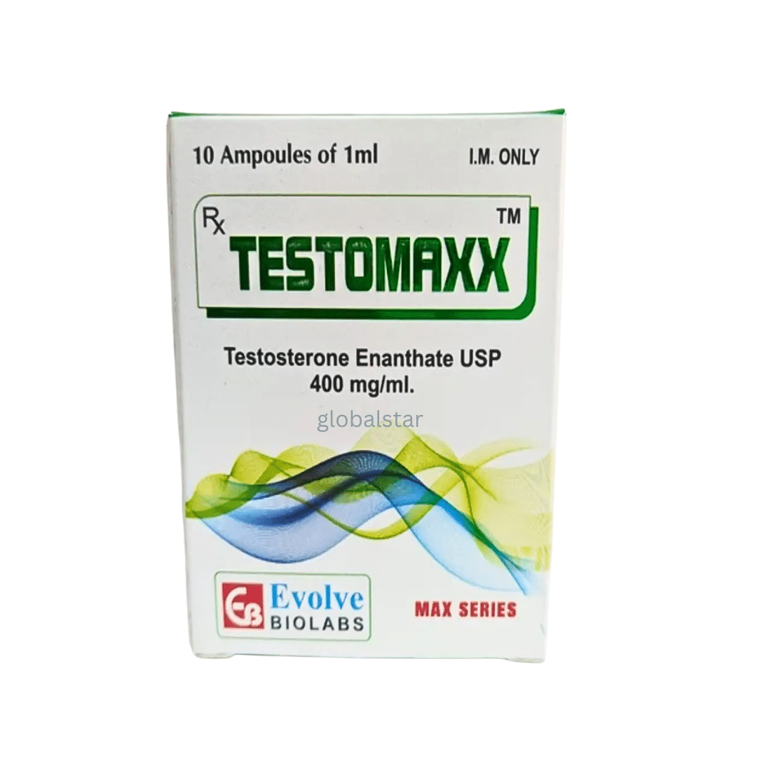 Testomaxx contains a potent testosterone blend (400 mg/mL oil injection), engineered for significant muscle mass, strength gain, and hormonal stability.