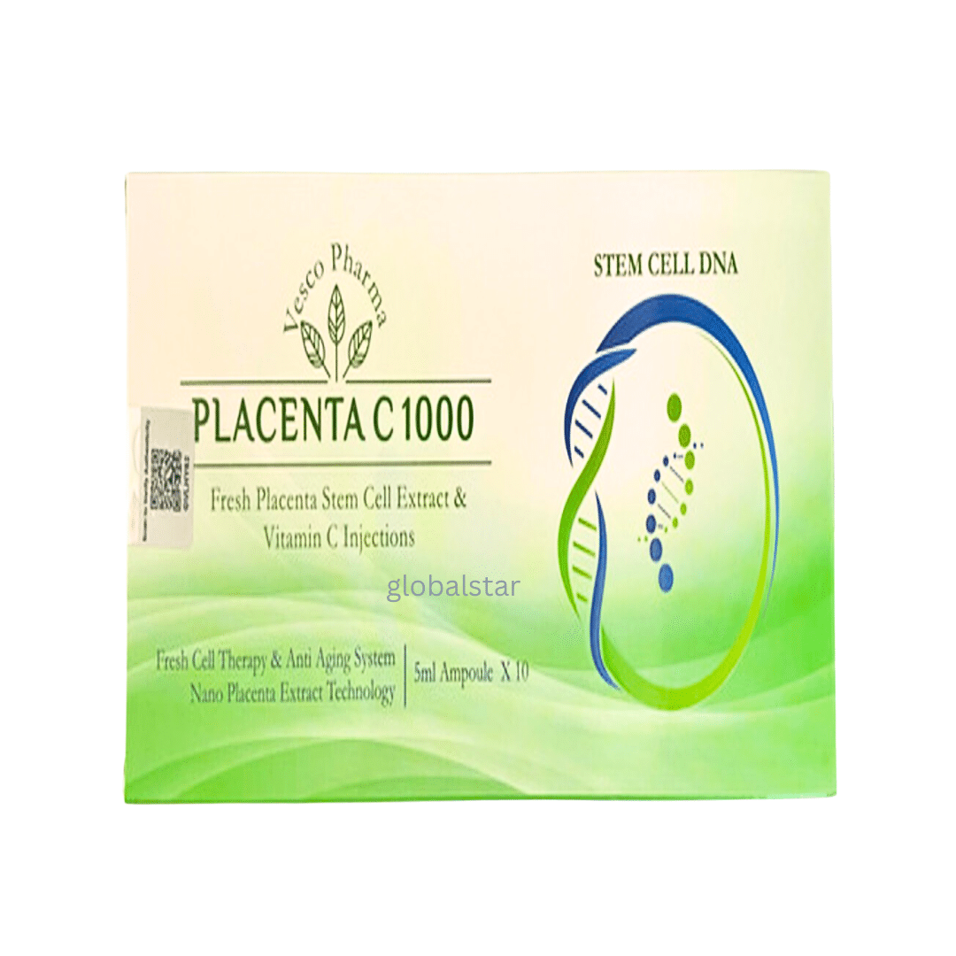 Natural placenta-extract injectable for skin rejuvenation and anti-aging, enriched with Vitamin C for glow and firmness.